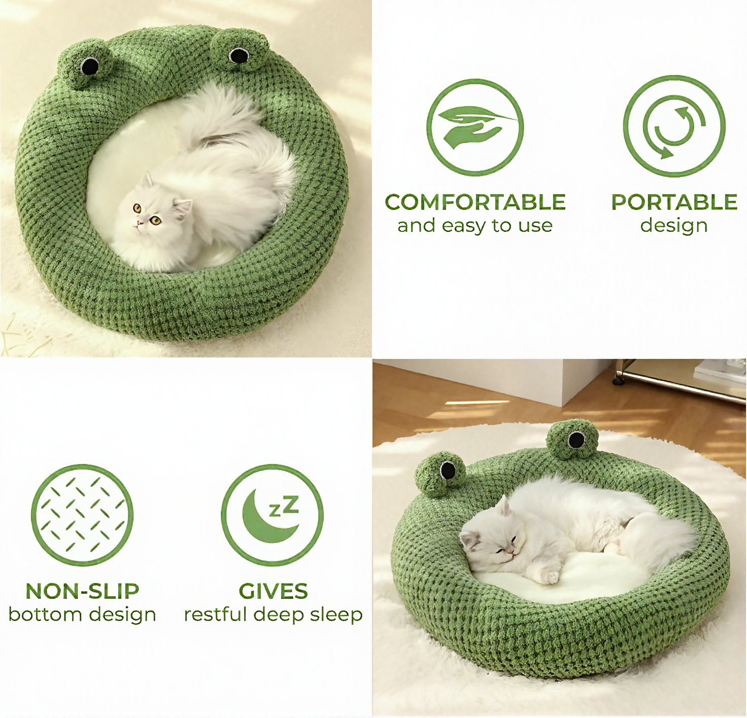 Cute Frog Shape: This cozy pet bed features a playful frog design, offering your pet a charming and comfortable resting place.